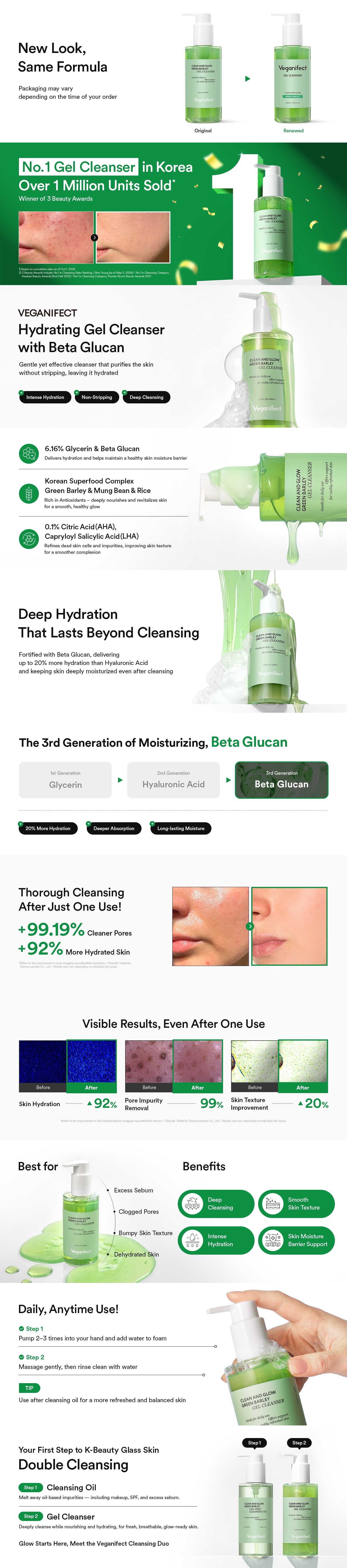 Low pH gel cleanser with Green Barley and LHA to hydrate and gently exfoliate skin.